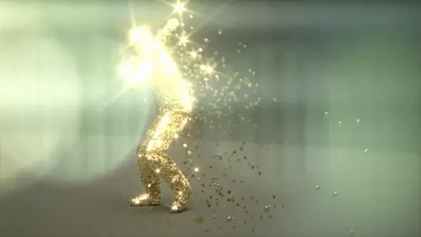 My creative vision centered on a fluid stream of abstract gold particles representing the $FAME token. These particles dynamically transform into iconic symbols of various sports, including baseball, MMA, and soccer, to signify the token's expansive reach and its role in connecting disparate fields of entertainment and competition.